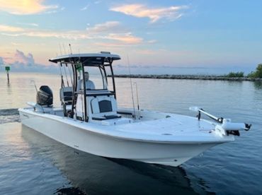 Beyond Blessed Charters is a 2021 Tidewater 25 Bay center console based out of Palmetto. It can take up to six guests. The boat is powered by one 300 HP gasoline outboard Mercury engine, offering a maximum cruising speed of 40 knots. The vessel comes equipped with audio system, bait well, fishfinder, ice box, outside speakers and rod holders.