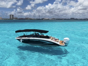 Step aboard our brand new 26’ Sea Ray and enjoy an unforgettable day cruising to Isla Mujeres! This sleek and modern boat blends sportiness with luxury, offering extremely comfortable seating for up to 6 people. Whether you’re looking to relax or celebrate, we provide top-notch service and an unbeatable atmosphere.