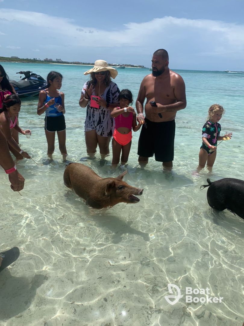 The captain seamed to have no plan for our trip. The weather was very windy and cooler, so you think he would have asked what would work better for us. I had specificity made requests for our trip since it was my sisters 40th bday wanted to have a nice day on the water. Plus I said we weren’t really interested in seeing the pigs because we didn’t want to spend the extra $200+ dollars to see them since we where a party of 10. Then His first stop is there with the pigs and puts us all on the banana boat to the island, which we all thought might have been for the snorkeling as there was lot goin on as we pulled up to the island. But then we are informed now that we took the ride to the pig island we now have to pay to see the pigs now that we are on the island. Which clearly the captain makes a kickback from as we saw money exchange hands. So after that again no real communication about the next planned stop just that it’s windy and might be rough. Then he proceeded to put us through some crazy 4-6’waves making it very hard and uncomfortable ride for half our party and one of friends hit his head in the bathroom during this ride because of the waves and cut his head open. The mate Jack did render aid for that. But non the less made his trip horrible the rest of the day. So we make this rough ass trip to the turtle area and see some turtles but are told there is no snorkeling with the turtles. So that wasn’t cool because this was what they advertised and it was the best place for it. So then we leave take a long ride back back to another area and at this point its now cooler out than when we started and he brings to this area and is like well I guess you can snorkel here. At this point no one is really interested. Only two ppl snorkel and the one mate then make a comment about don’t loose my flippers to my friend. I asked if they had enough equipment for us to use before the trip and the captain said yes and they we find out the one pair of flippers are the mates. Then he takes us to the Floating Bar area. We wait around for another boat to take us there it never shows up, so we tell him to just forget it and take us back. Then he slowly starts to move out of the area and then this bar boat ferry shows up and this point we are over the trip and insist that we just want to go back. And I’m sure it’s because they make a kickback back at the bar as well. So we wasted $1650 and half a day of our vacation between the boat trip and the pigs. Don’t recommend this charter at all.