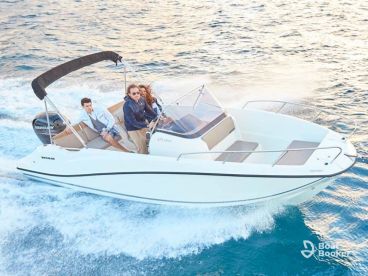 Discover the ultimate boating experience with MontenegroGlobe Tours aboard the luxurious Quicksilver 675 Open Center Console, moored in the beautiful Dobrota. Perfect for up to 8 guests, this stunning vessel is powered by a robust 200 HP Yamaha outboard engine, delivering exhilarating speeds of up to 45 knots for a thrilling ride on the open sea.