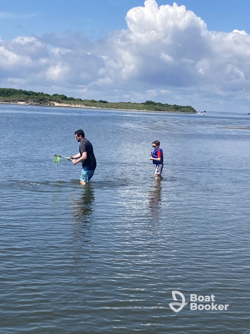 Our family had a great time boating with Captain David around Cape Hatteras. The boat was clean, and the size was just right for our family of 4. Captain David planned a great few hours for us. He took us to one of the islands to eat lunch, we dropped a few poles in the water (no fish, but it was still fun to try), then we drove out to one of the sand bars. This was the highlight for our family, as we got off the boat, waded to the sandbar, and found some really beautiful shells and sand dollars. We are 2 adults and two teenage girls, and both girls said it was their favorite part of the trip. Captain David is extremely knowledgeable about the area, a former educator and a current firefighter. He was funny and thoughtful with what he planned for our family, and he has some pretty epic sea creature stories. Ask him about his great white shark encounter! We would highly recommend any boating experience with Captain David!