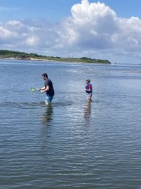 Our family had a great time boating with Captain David around Cape Hatteras. The boat was clean, and the size was just right for our family of 4. Captain David planned a great few hours for us. He took us to one of the islands to eat lunch, we dropped a few poles in the water (no fish, but it was still fun to try), then we drove out to one of the sand bars. This was the highlight for our family, as we got off the boat, waded to the sandbar, and found some really beautiful shells and sand dollars....