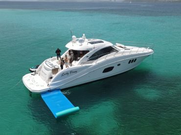 Aventurea Charters is a 2009 Sea Ray Sundancer Motor yacht based out of Fajardo. It can take up to twelve guests. The boat is powered by two 900 HP diesel inboard Man engines, offering a maximum cruising speed of 26 knots.