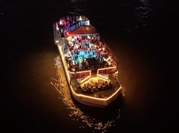 Bangkok Island is a Tropical Party Boat with 2 stages and 4 decks. It can take up to 300 guests. The boat is powered by two 360 HP diesel inboard Cummins engines, offering a maximum cruising speed of 5 knots. The vessel comes equipped with air conditioning, an audio system, an ice box, inside speakers, outside speakers, and a refrigerator.