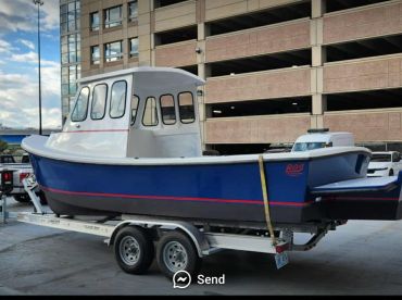 Powered by a 175 HP Suzuki outboard, this vessel cruises at a swift 33 knots, getting you to prime fishing spots and scenic island destinations in no time. Equipped with a state-of-the-art fishfinder, baitwell, rod holders, and an ice box, it's perfect for anglers and explorers alike. Enjoy your trip with our onboard audio system while taking in Boston’s stunning waterfront views.
