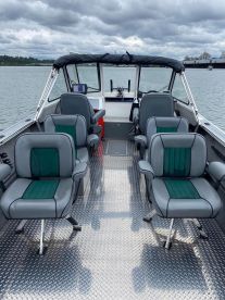 NW River Adventures invites you to explore Portland’s stunning waterways aboard a beautifully restored 2008 Alumaweld Intruder—renovated in 2024 for comfort, performance, and unforgettable experiences. Ideal for up to five guests, this versatile aluminum vessel delivers a smooth and stable ride, powered by a reliable 225 HP Mercury outboard with cruising speeds up to 45 knots.