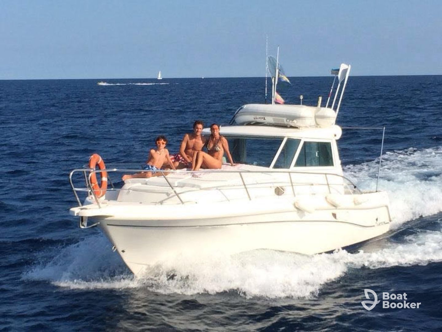 Onboard amenities include a spacious aft sundeck, an inviting bow sunbed, a full kitchen, a comfortable cabin, and a clean toilet—everything you need for a comfortable day on the water. For peace of mind, the vessel is fully equipped with advanced navigation and safety gear: GPS, radar, autopilot, sonar, bow thruster, life jackets, and more.