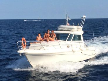 Step aboard Ramfel II, a sleek 2012 Faeton Moraga 910 cruiser and Sportfishing vessel, perfectly located just 30 minutes from Barcelona’s vibrant city center. Cruise along the stunning Catalonian coastline, where crystal-clear waters and scenic beaches set the stage for an unforgettable maritime escape.