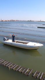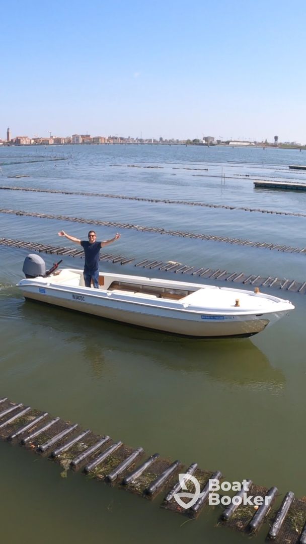 Cruise aboard a beautifully restored 2015 Brube Topa (refitted in 2024), a traditional Venetian boat accommodating up to 5 guests. Powered by a reliable 40 HP Yamaha engine, she reaches up to 25 knots and is equipped with a sound system and fishfinder for a comfortable and fun ride.