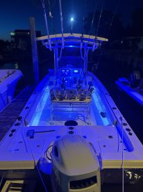 Powered by a reliable 150HP Suzuki outboard, the boat reaches cruising speeds up to 35 knots, ensuring you cover more water and enjoy more sights in less time. Relax and soak up the sun while enjoying the boat’s modern amenities, including a premium audio system, outside speakers, baitwell, rod holders, ice box, and fishfinder for your fishing adventures.
