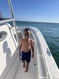 Onboard amenities include a premium audio system with inside speakers, WiFi, grill, ice box, baitwell, rod holders, and modern navigation electronics. A full bathroom with a head and toilet adds extra comfort, making longer trips easy and enjoyable for everyone. Optional add-ons like drinks and jet skis can be arranged to elevate your experience even further.