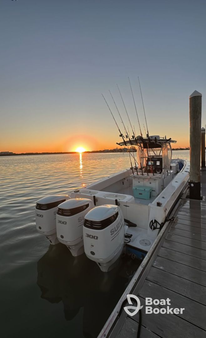 Powered by triple 300HP Suzuki outboards, Top Knotch reaches thrilling speeds up to 55 knots—perfect for island hopping, sandbar escapes, and scenic booze cruises. Onboard amenities include a premium audio system, baitwell, rod holders, outside speakers, a fishfinder, and a spacious ice box to keep your drinks and catch fresh.
