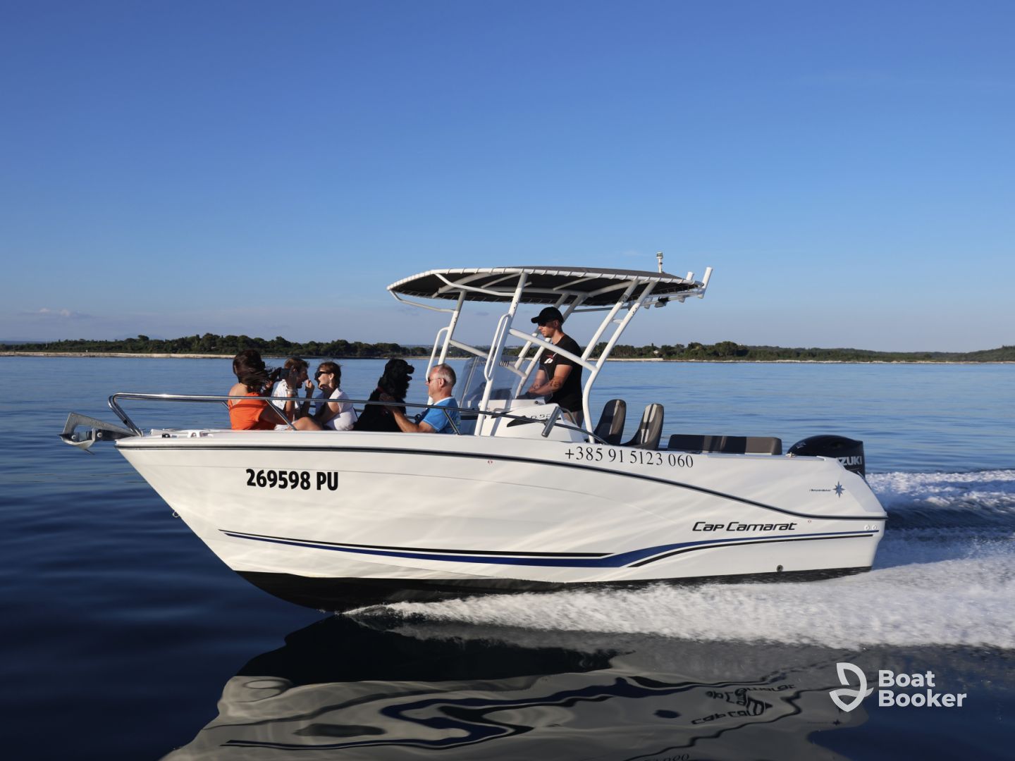 Sea Tours Istria – Jeanneau is a 2022 Jeanneau Cap Camarat 6.5 Center Console based in Fažana, perfect for up to nine guests seeking adventure on the Adriatic. Powered by a 200 HP Suzuki outboard engine, it offers smooth cruising at up to 35 knots, letting you explore hidden bays, turquoise waters, and stunning coastal scenery in style.
