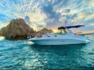 Discover the ultimate Cabo San Lucas experience aboard Sweetie Pie, a stunning 2003 Sea Ray 340 Sedan Bridge Cruiser designed for comfort, style, and adventure. Perfectly suited for up to eight guests, this luxurious vessel is powered by twin 640 HP MerCruiser engines, delivering an exhilarating cruising speed of up to 32 knots. Whether you're seeking thrilling exploration or relaxed cruising, Sweetie Pie offers the perfect blend.