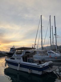 Step aboard Catarina, a beautifully restored 1987 Rio 1000Fly motor yacht, ready to whisk you away on an unforgettable boating adventure from the scenic port of Bar. Fully refurbished in 2020, this classic 10-guest vessel combines vintage charm with modern comfort. Powered by twin 160 HP Volvo Penta diesel engines, Catarina cruises smoothly at up to 10 knots.