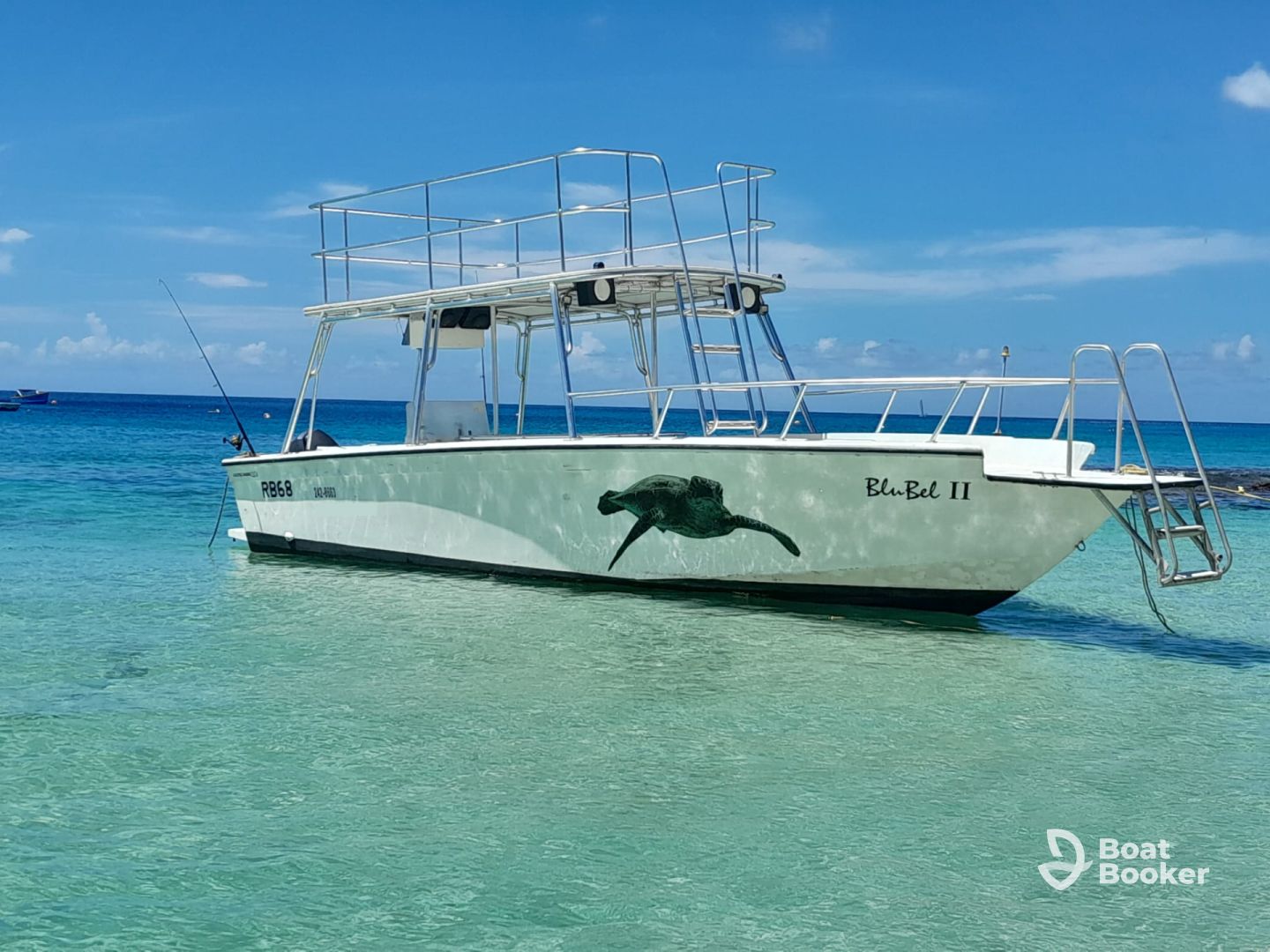 Your adventure is guided by the experienced team at BluBel Watersports, specialists in unforgettable boat tours, snorkeling excursions, and lively booze cruises. Enjoy panoramic views from the flybridge, soak up the sun on the bow sundeck, or groove to your favorite tunes with the premium audio system and inside/outside speakers.