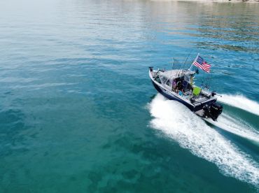 Ideal for up to four guests, the boat is fully outfitted for comfort and excitement on the water. You’ll find a fishfinder, rod holders, and GPS to help you reel in the big one, plus outdoor speakers to keep the vibes going as you cruise the shoreline. There’s also one cozy cabin on board for relaxing between stops.