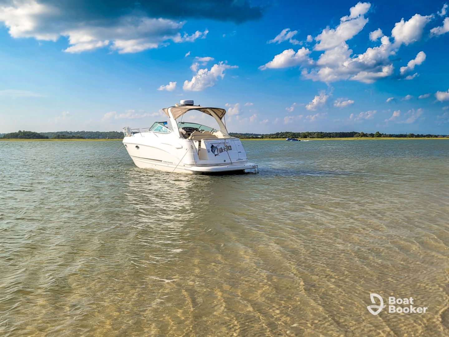 Explore scenic gems like Wrightsville Beach, Carolina Beach, Figure 8, and Bald Head Island in total comfort. Onboard amenities include air conditioning, a full kitchen, refrigerator, grill, ice box, one private cabin with a berth, full bath, and sundecks at both the bow and aft. Enjoy your favorite tunes through the audio system, connect to onboard WiFi, and take in the views from the shaded bimini or bathing platform.