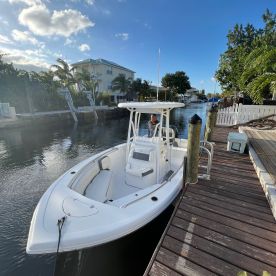 Captained by local expert Jason Carlisle and his first mate and lovely wife Kristin, your adventure can be anything from a laid-back canal tour or booze cruise to island hopping and dolphin spotting. The boat is fully outfitted with essential amenities including a sound system, baitwell, fishfinder, grill, rod holders, and outside speakers—plus a relaxing bow sundeck for soaking up the Florida sunshine.