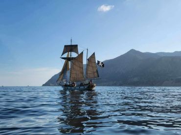 Relax on the spacious main deck or quarterdeck, sunbathe in comfort, or unwind in hammocks. The well-equipped galley, two bathrooms, and unique touches like four black powder cannons add to the authentic atmosphere. Enjoy generous onboard policies including alcohol, pets, children, swimming, and even smoking.
