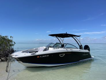 Set off on an unforgettable adventure with Sunshine Watersports Boat Charter, a sleek and spacious 2021 Cobalt 25 SC Dual Console based out of Key Largo. Powered by a 300 HP Mercury outboard, this vessel cruises comfortably at up to 35 knots, perfect for exploring the pristine waters of the Florida Keys.