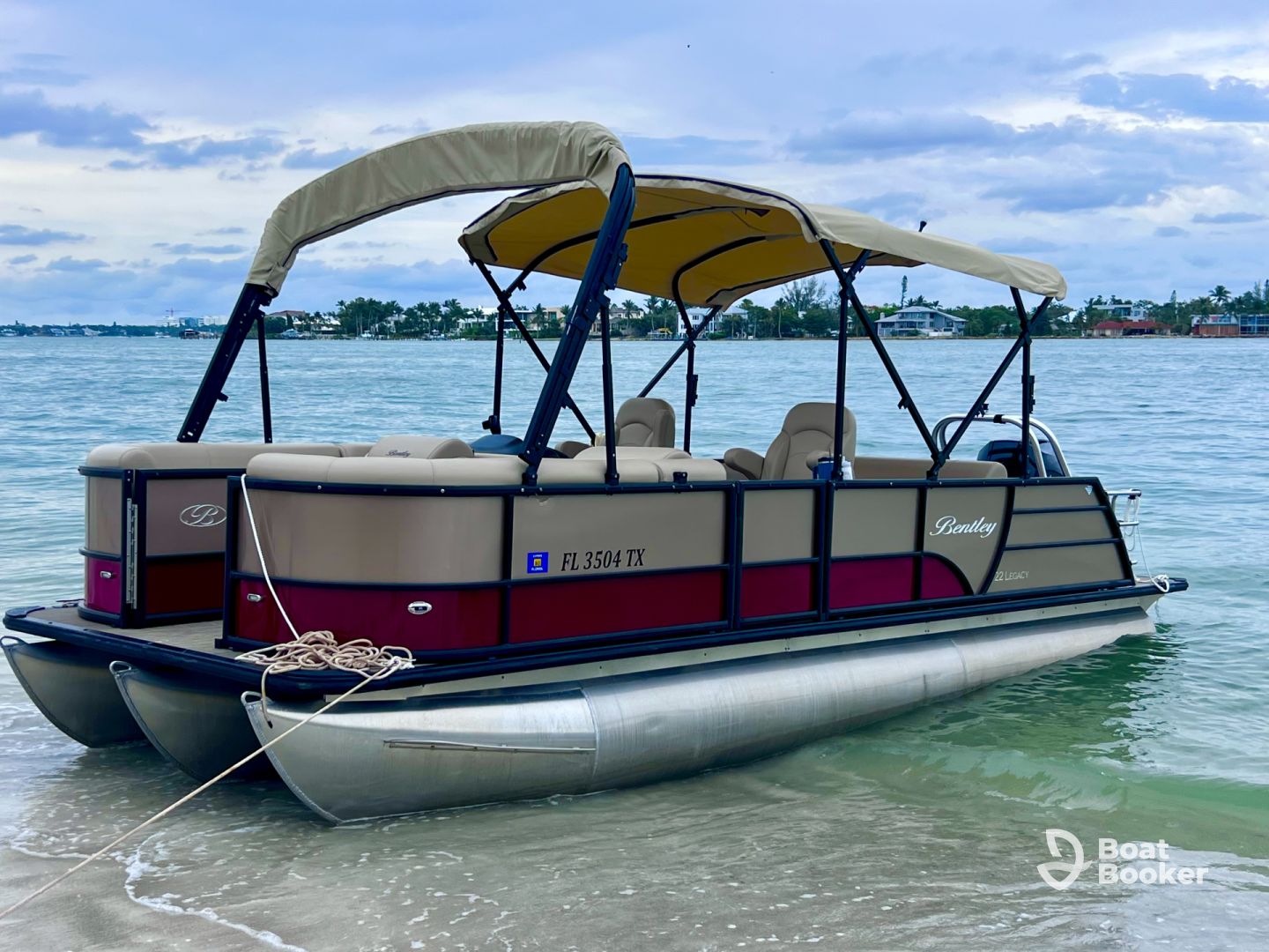 Step aboard Siesta Cruise Boat Tours for an unforgettable day on the water in Sarasota! This sleek 2025 Bentley 223 Swingback Pontoon comfortably welcomes up to 6 guests and is powered by a smooth 200 HP Mercury engine, reaching cruising speeds of up to 29 knots. Relax on the spacious aft sundeck, enjoy your favorite music with the premium audio system and outside speakers, and keep your drinks chilled in the onboard icebox.
