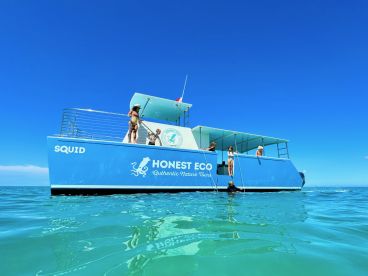 With three distinct viewing areas, a mix of sunny and shaded spots, and a clean, spacious bathroom, SQUID provides everything you need for an incredible dolphin-watching and snorkeling experience.