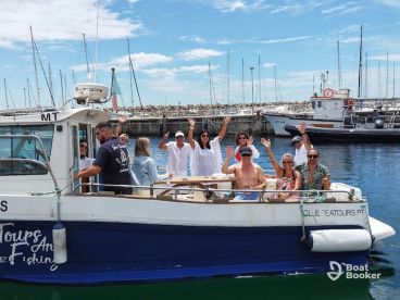 Step aboard for a memorable adventure in a 2008 Silcar 750 Headboat based in Sesimbra. It comfortably accommodates up to ten guests, making it ideal for fun-filled family outings, group getaways, or unforgettable celebrations. The boat is powered by one 225 HP diesel inboard Volkswagen engine, offering a maximum cruising speed of 27 knots. The vessel comes equipped with an audio system, baitwell, fishfinder, grill, ice box, inside speakers, and rod holders.