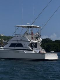 Step aboard Sin Priza, a beautifully restored 1987 Bertram 375 Sportfishing yacht based in Fajardo. Powered by twin 375 HP Caterpillar diesel engines, this spacious vessel comfortably cruises at 20 knots, ready to take you and up to six guests on an unforgettable adventure.