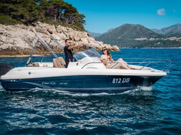 Experience the ultimate private speedboat adventure with Dubrovnik Speedboat Tours aboard a 2015 Cap Camarat 6.5 Deck boat, based in stunning Dubrovnik. Perfect for up to six guests, this sleek 7-meter vessel is powered by a 140 HP Suzuki engine, reaching speeds up to 22 knots for smooth, exciting cruising across the Adriatic.