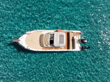 Experience the stunning waters around Alikanas aboard Jeronimo Zante Cruises, a sleek 2010 Poseidon Sundeck 755 Cruiser designed for comfort and adventure. Accommodating up to seven guests, this well-appointed vessel is powered by a robust 250 HP Suzuki outboard engine, reaching speeds up to 28 knots—perfect for exploring the coast in style and speed.