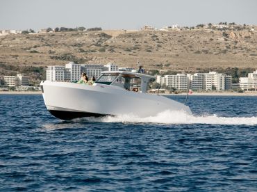Private Yachting Experience Aboard ALENA is a stunning 2023 Mazu 42 Motor Yacht based in Rodos, designed for up to ten guests seeking comfort, speed, and unforgettable moments on the water. Powered by twin 350 HP Volvo Penta diesel engines and capable of cruising up to 42 knots, this sleek vessel blends luxury with performance for an exceptional yachting adventure.