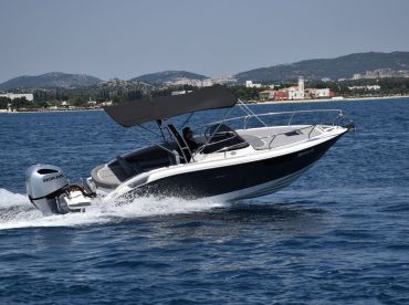 Discover the stunning Šibenik archipelago aboard the Apolon Plovila – Eolo 730 HBS Walkaround, your perfect boat for an unforgettable day on the water. This versatile vessel comfortably accommodates up to eight guests and is powered by a reliable 250 HP Honda outboard engine, reaching cruising speeds of up to 40 knots to whisk you between islands with ease.