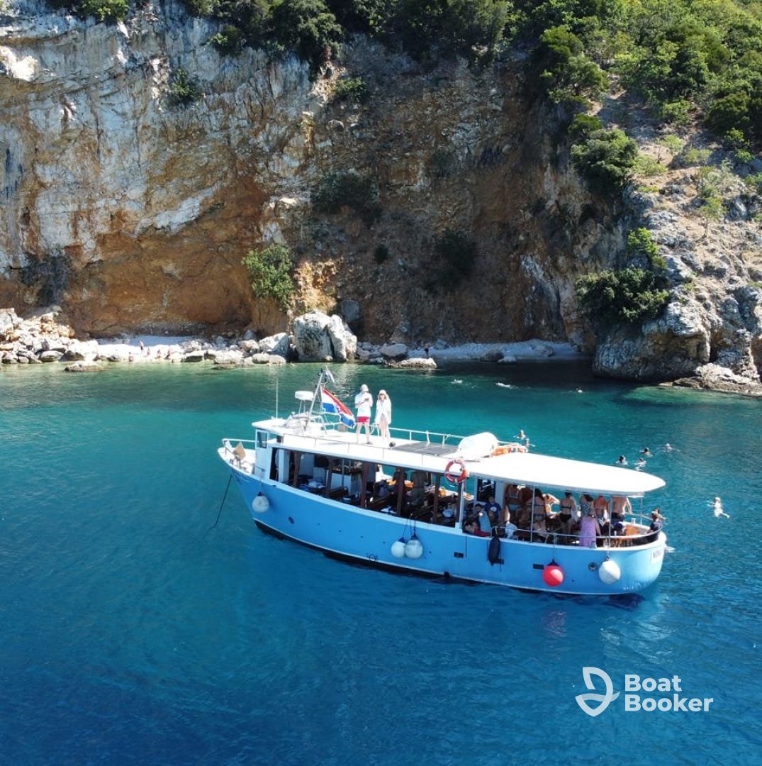Step aboard Nona Eda, a beautifully restored 1994 Iveco Italija Motor Yacht, and discover the stunning Adriatic coastline with Boat Tours Opatija. Freshly renovated in 2024, this spacious yacht accommodates up to 50 guests, making it perfect for group adventures, celebrations, or relaxing day trips. Powered by a reliable 300 HP Fiat Iveco diesel engine, you’ll cruise comfortably at speeds up to 10 knots.