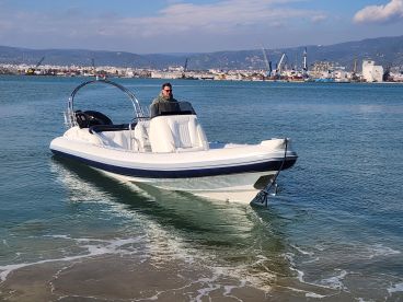Discover the magic of the Aegean with Pelion Rent a Boat – Volos aboard this sleek 2009 Cobra Elite 8.6 Inflatable, restored to pristine condition. Departing from Volos, this premium vessel comfortably accommodates up to eight guests, making it perfect for families or small groups seeking unforgettable adventures.