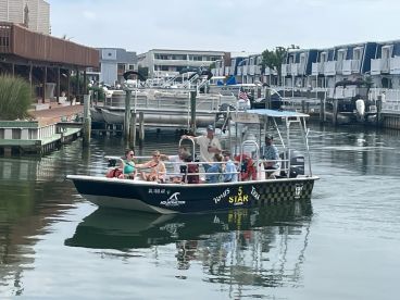 Discover Ocean City from a whole new perspective with 5 STAR Charters Tours & Taxi! This spacious 24 ft USCG-inspected Carolina Skiff can comfortably accommodate up to 13 guests, making it perfect for families, friends, or group outings. Powered by a reliable 150 HP Yamaha outboard engine, you’ll cruise smoothly at speeds up to 30 knots.