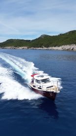 Step aboard Dubrovnik Sea View, a beautifully restored 2015 Naval 23 motorboat, and discover the magic of the Adriatic from the heart of Dubrovnik. Recently updated in 2024, this sleek and stylish vessel is perfect for small groups of up to seven guests looking to explore the coastline in comfort and style. Powered by a reliable 200 HP Yamaha outboard engine, Dubrovnik Sea View cruises smoothly at up to 24 knots—ideal for discovering hidden bays, the Elaphiti Islands, or taking a leisurely ride along the historic city walls.