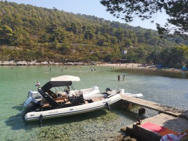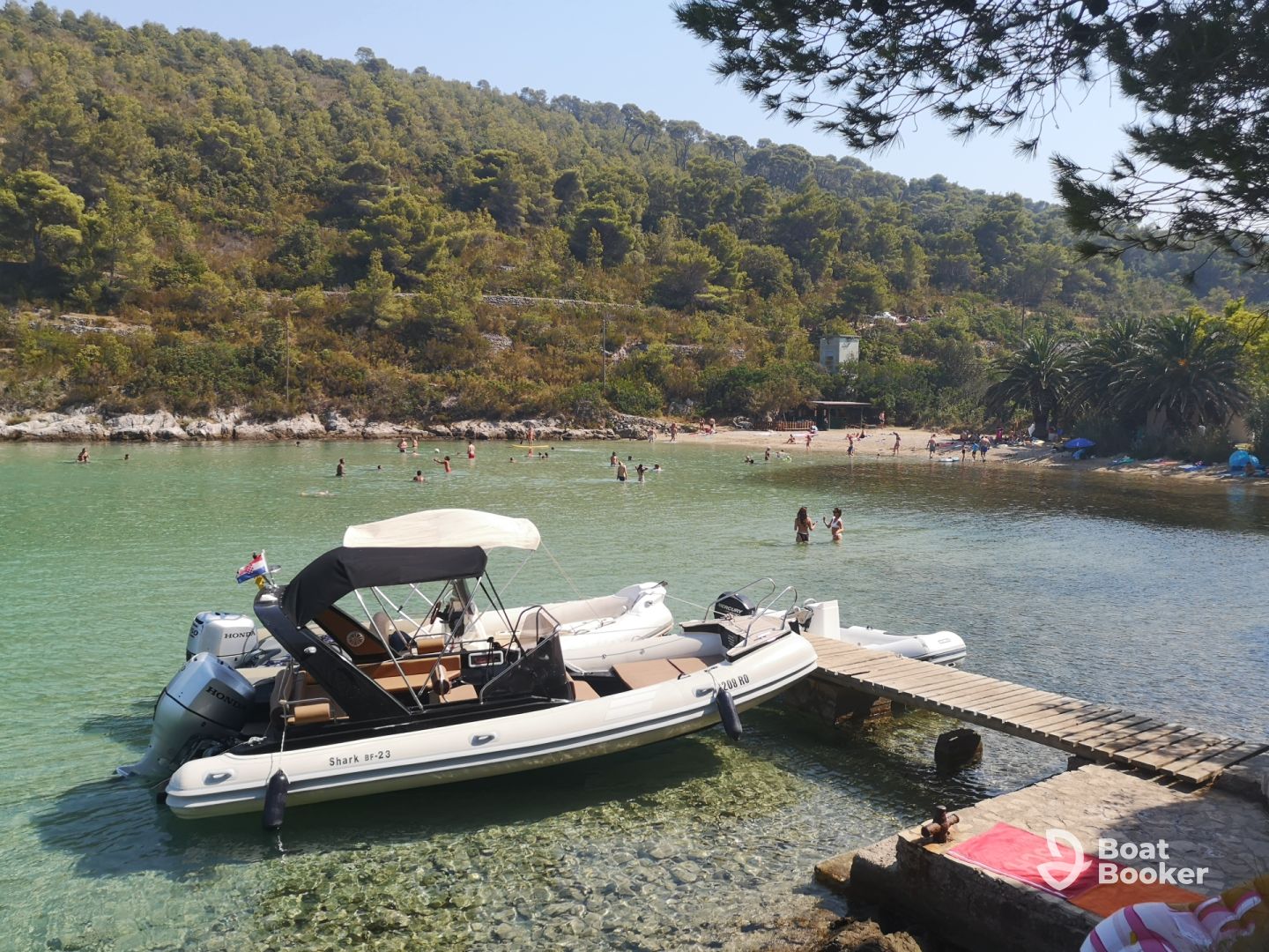 Experience the ultimate day on the water aboard North Breeze d.o.o., a 2019 Grginic Yachts Shark 23 Inflatable Outboard based in Split. Perfect for up to seven guests, this sleek and comfortable vessel is powered by a 150 HP Honda outboard engine, reaching speeds of up to 25 knots. Enjoy the open sea with features like a bow sundeck, flybridge, audio system, ice box, and outdoor speakers.