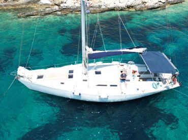 Step aboard the 1999 Atlantic 49 Sailing, beautifully restored in 2010, for a full-day adventure in the stunning Aegean. Departing from Skopelos, this spacious yacht accommodates up to 12 guests, offering both comfort and style. Powered by a 77 HP diesel inboard Ford engine, she cruises smoothly at 9 knots, perfect for exploring hidden bays and crystal-clear waters.
