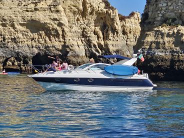 Step aboard Nauti Girl, a sleek and stylish 2000 Fairline Targa motor yacht based in beautiful Lagos, Portugal. Designed for comfort and performance, this yacht can host up to 10 guests and cruises effortlessly with twin 285 HP Volvo diesel engines, reaching speeds up to 40 knots. Whether you're after relaxation or adventure, Nauti Girl delivers.
