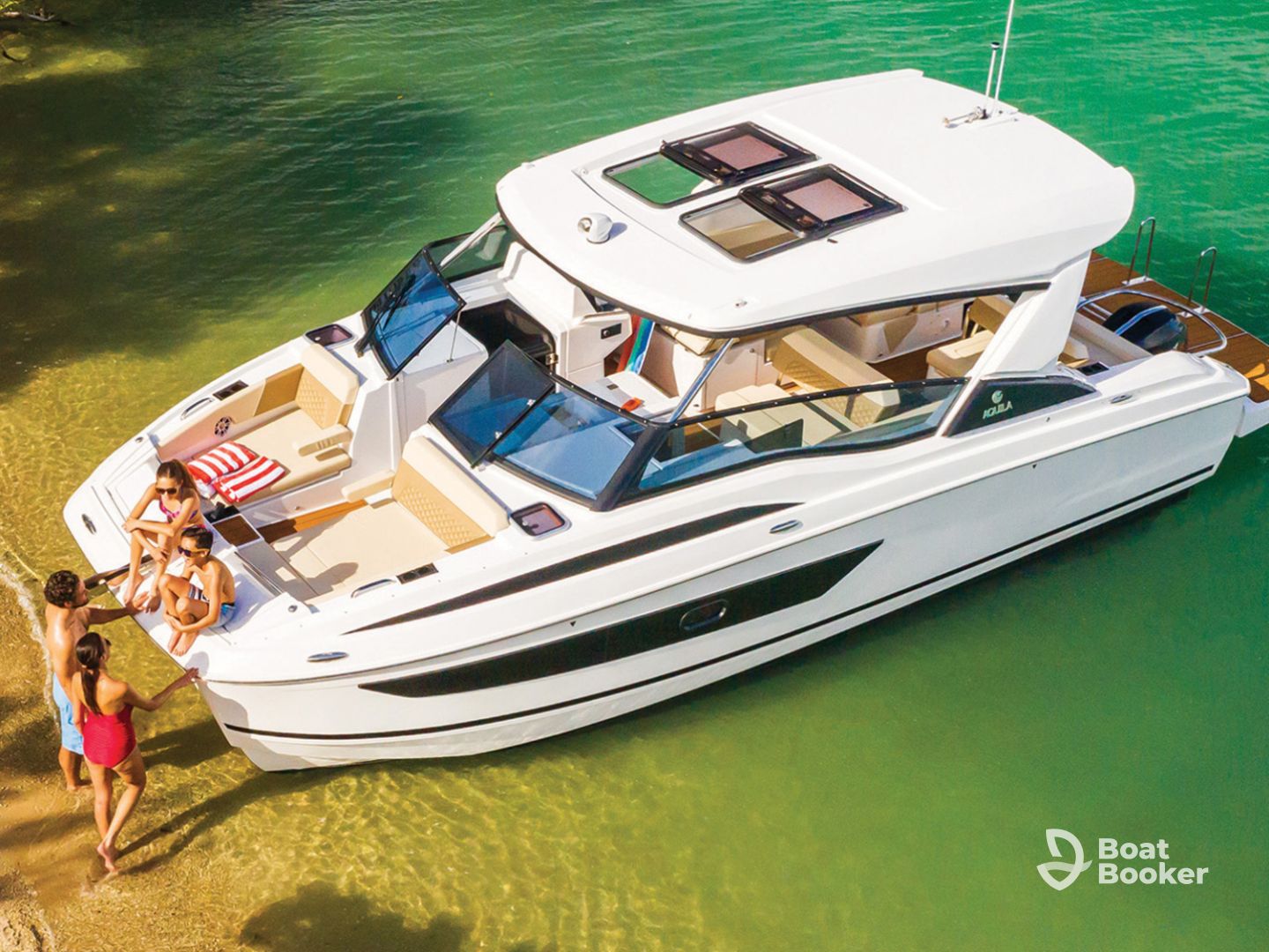 Step aboard and enjoy spacious amenities including an aft sundeck, bow sundeck, bathing platform, a fully equipped kitchen, one cozy cabin, a full bathroom, and modern audio systems with inside and outside speakers to set the perfect mood. Whether you want to relax under the bimini shade or dive straight into the crystal-clear waters, Marine Go has you covered.
