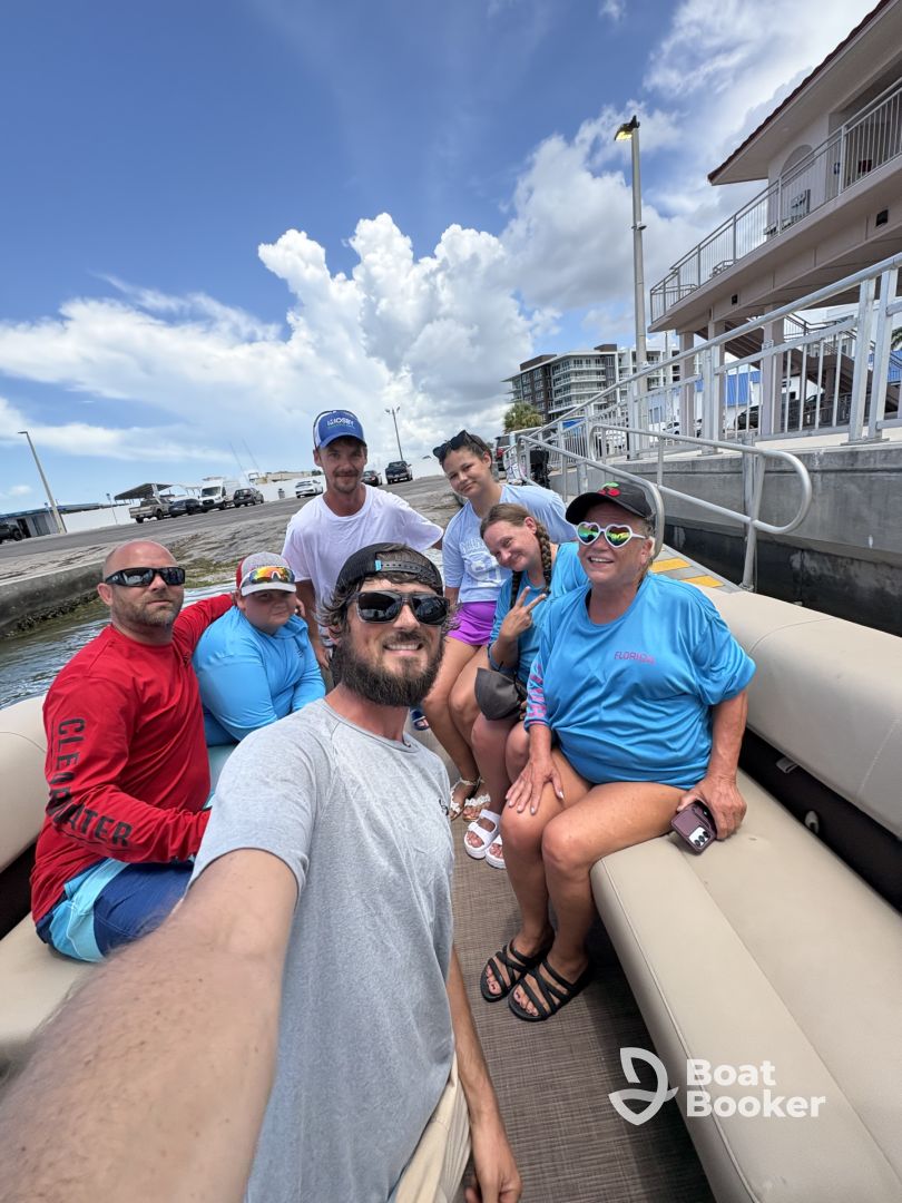 Captain Kyle Cissell specializes in booze cruises, island hopping, dolphin watching, sandbar trips, pontoon tours, vacation adventures. Onboard, enjoy ample sunbathing space with bow and aft sundecks, a bathing platform, bimini shade, ladder access for all ages, a floating mat for relaxing in the water, and a convenient onboard toilet. Optional snorkeling equipment is available to explore the crystal-clear waters.