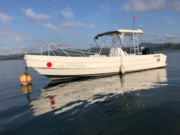 Bahia Rica Adventures invites you aboard their 2019 Apex 26 Center Console for an unforgettable day on the water, departing from Paquera. This comfortable and reliable vessel accommodates up to 12 guests and is powered by a 200 HP Mercury outboard engine, cruising smoothly at 20 knots. Outfitted with all essential safety gear—including life jackets and a VHF radio—you can sit back and enjoy the ride with peace of mind.