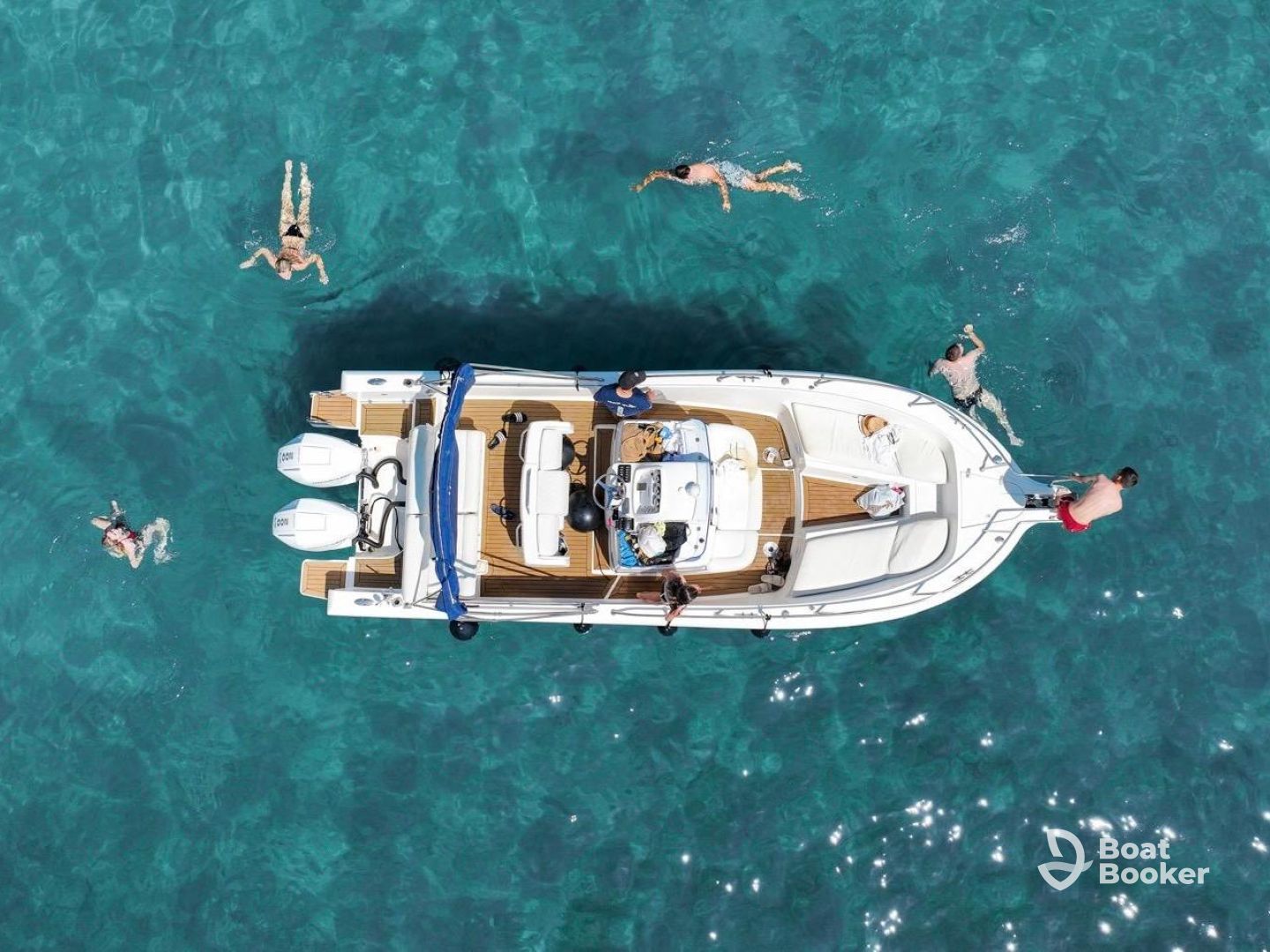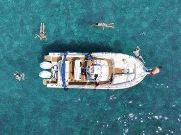 Hop on White Shark 265, a high-performance boat, built for both speed and stability, powered by two Mercury 6-cylinder outboard engines with a total of 400 horsepower! There's plenty of space on board, with room for up to 12 guests. Listen to music, swim, jump, snorkel, relax under the bimini, or lounge in the front, do whatever you want, it is your day!