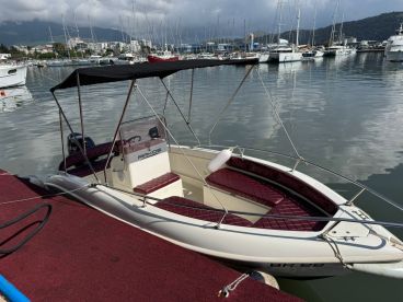 Experience the stunning coastline of Bar aboard the Sefer Group DOO Bar, a beautifully restored 2008 Arkos Open 537 Center Console (2025 renovation) designed for up to six guests. Powered by a 140 HP Suzuki outboard engine, this sleek vessel reaches speeds up to 40 knots, perfect for thrilling cruises or relaxed island hopping.