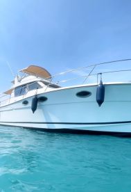 Experience the ultimate luxury on the Sea Pearl, a 1990 Gib Sea Jamaica 38 Motor Yacht based in beautiful Cannes. Perfect for up to four guests, this elegant vessel combines comfort, performance, and style, powered by twin 560 HP diesel inboard Iveco engines, reaching a cruising speed of 20 knots.