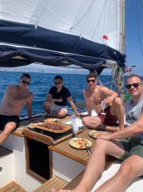 With its vintage design and spacious deck, it’s perfect for groups looking to share a good moment on board, combining sailing, atmosphere and time together.
