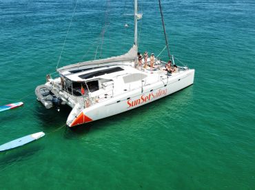 Experience the ultimate sailing adventure with Sunset Sailing Algarve aboard this beautifully restored 1995 Nautitech 475 Catamaran (2022), departing from Faro. Comfortably accommodating up to 14 guests, this spacious catamaran is perfect for families, friends, or couples seeking an unforgettable day on the water. Powered by twin 55 HP Volvo Penta diesel engines, it cruises effortlessly at 10 knots.