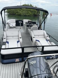 Experience the ultimate Florida Keys adventure aboard Wakezone Watersports, a 2025 G3 Tritoon Pontoon based in Duck Key. Perfect for up to six guests, this sleek pontoon is powered by a 200 HP Yamaha outboard engine, cruising at speeds up to 30 knots, ensuring both comfort and excitement on the water.