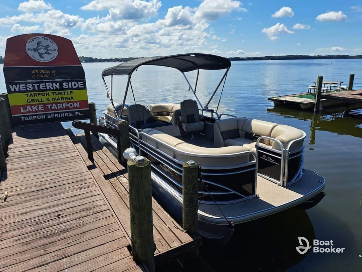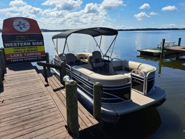 Explore the beautiful waters of Lake Tarpon aboard Lake Tarpon Tours, a 2022 Sun Tracker PB22 Pontoon based in Palm Harbor. Perfect for up to six guests, this spacious and comfortable pontoon is powered by a 150 HP Mercury outboard engine, cruising smoothly at up to 35 knots.